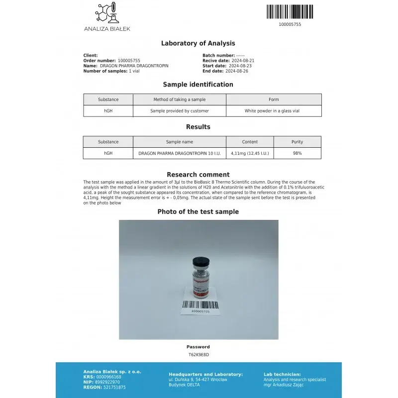 | Presentation: | Dragontropin 10 IU for sale - 1 x kit Ñ… 10 IU |